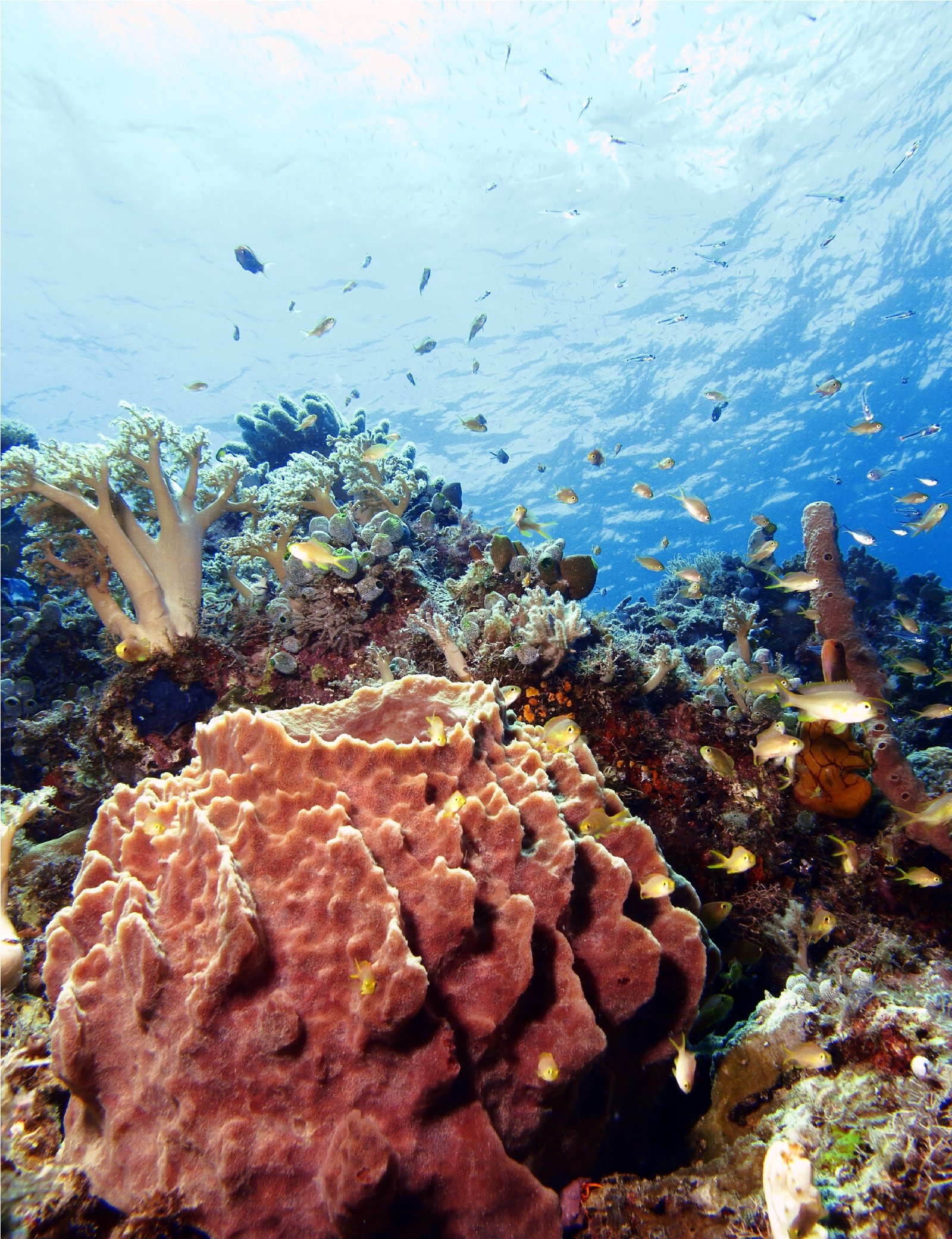 We can immediately see eagle rays and turtles accompanied by remora swimming out of the reef. During the dive we can see mackerel, and large groupers on the inside. This is also a great dive site for sharks, the occasional hammerhead shark, here